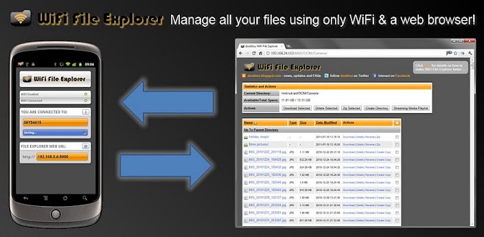 WiFi File Explorer PRO (無線檔案管理器) 能夠讓你在PC上用瀏覽器透過WIFI對Android手機中的檔案進行管理,